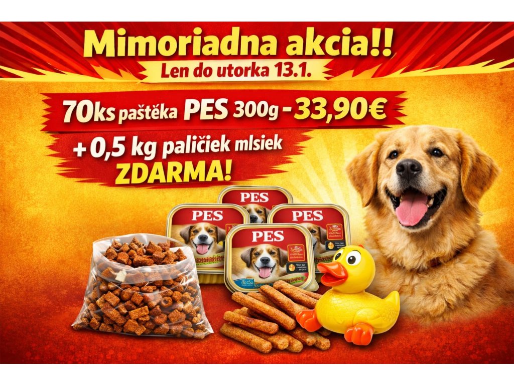 MIMORIADNA AKCIA - 70ks vanička paté Vitaldog 300g + 0,5kg palička zdarma + pískacia hračka