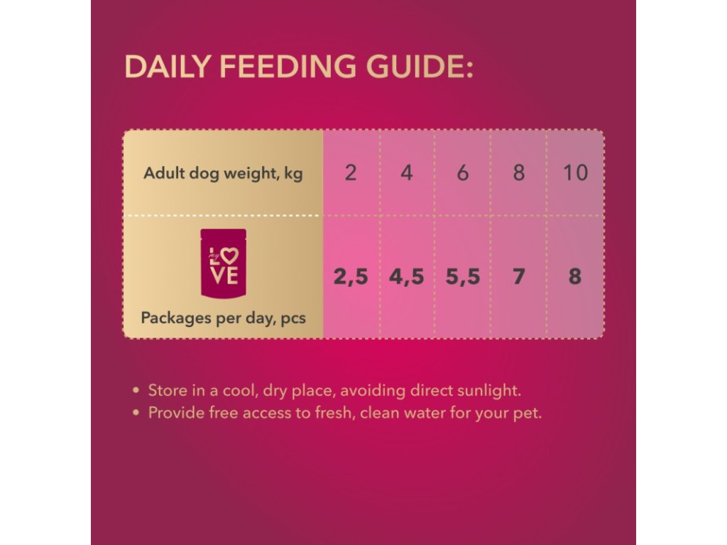 Po otvorení uchovávajte v chladničke maximálne 48 hodín. Podávajte pri izbovej teplote. Krmivo pre domáce zvieratá sa musí zavádzať postupne (aspoň počas prvých 5 dní). Zabezpečte svojmu domácemu miláčikovi voľný prístup k čerstvej a čistej vode.